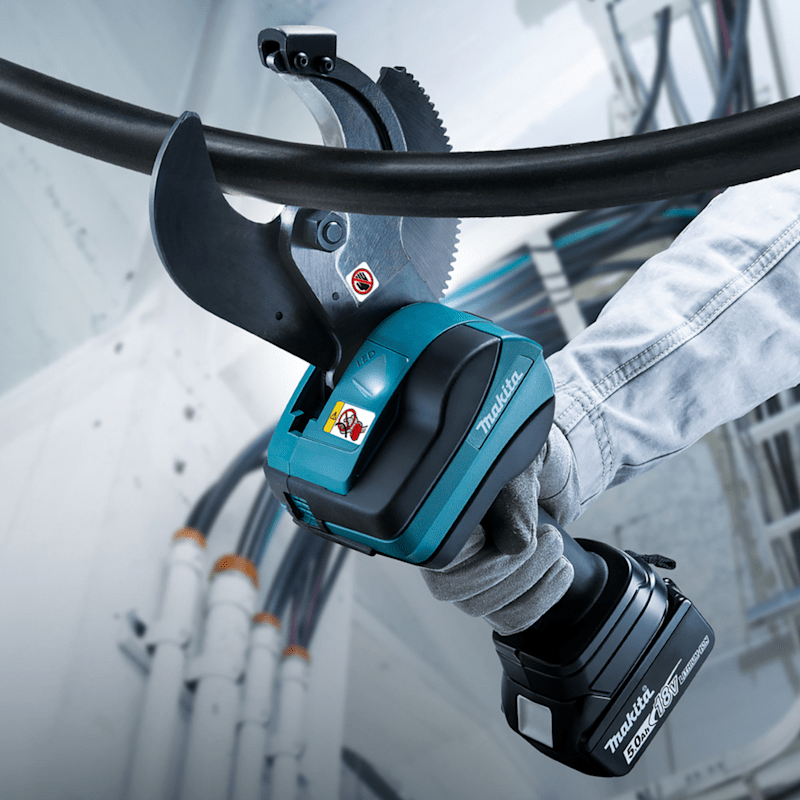 Akku-Kabelschneider mit einstelllbarer, automatischer Rücklauffunktion. Offener Typ, zum einfachen Trennen von Elektrokabeln bis 50 mmø an jeder Position. Ausgestattet mit einer Arbeitsleuchte mit Nachglimmfunktion.