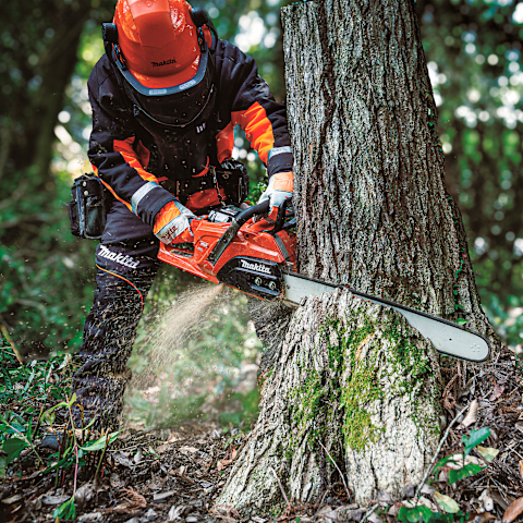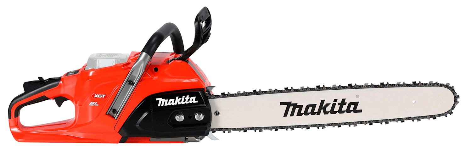 Die leistungsstärkste XGT 40V max. Akku-Kettensäge von Makita!Die leistungsstarke Akku-Kettensäge in Signalfarbe Rot ist besonders für schwere Anwendungen wie das Fällen, Ablängen und Entasten großer