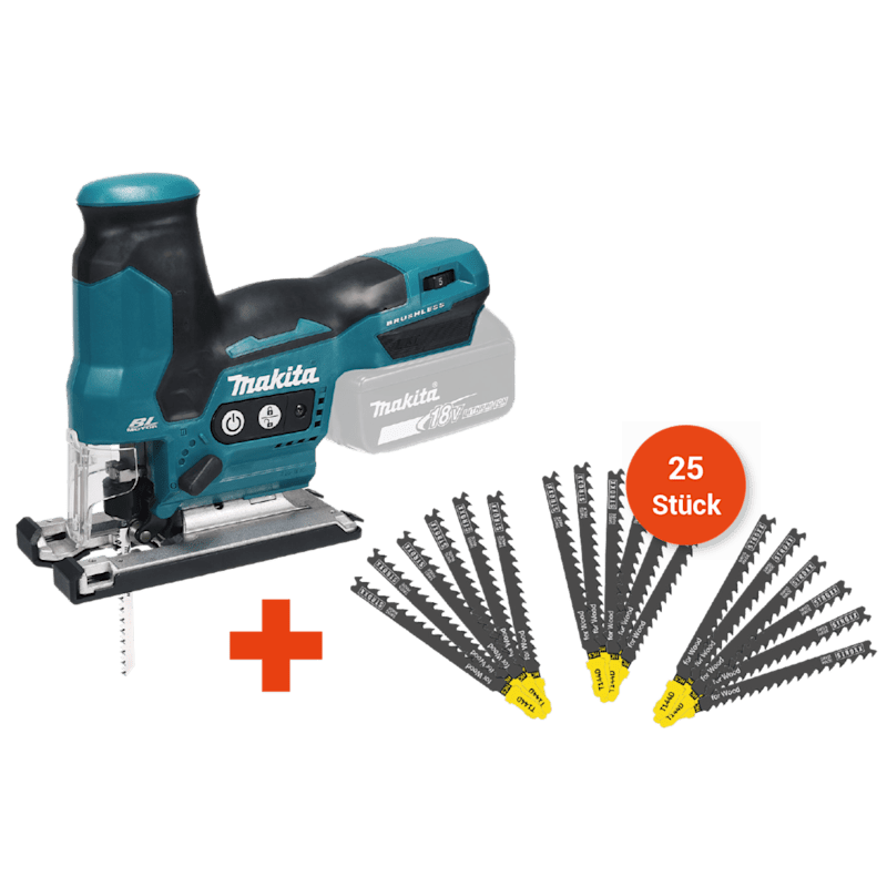 1 x Pendelhubstichsäge DJV185Z, 100 x STROXX Stichsägeblatt T144D, ohne Akku, ohne Ladegerät