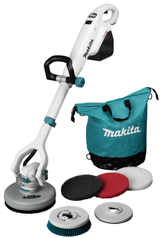 Montage - Bürste oder Pad auf den Boden legen, die Spitze der Maschine ausrichten, gegen den Boden drücken und die Maschine starten.