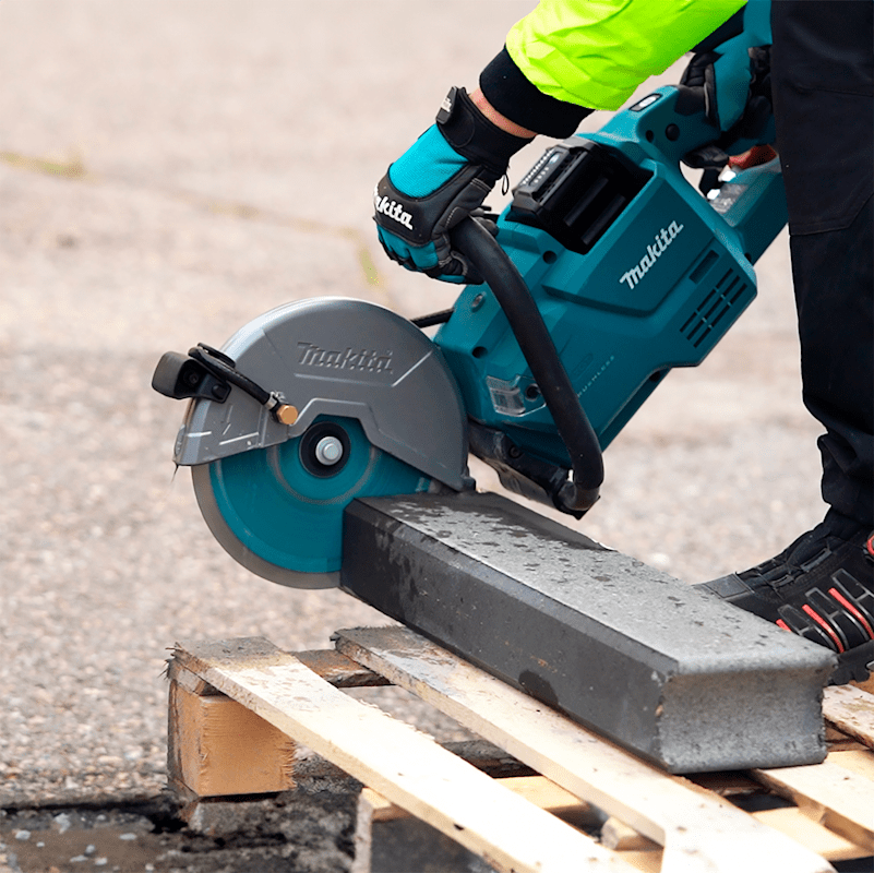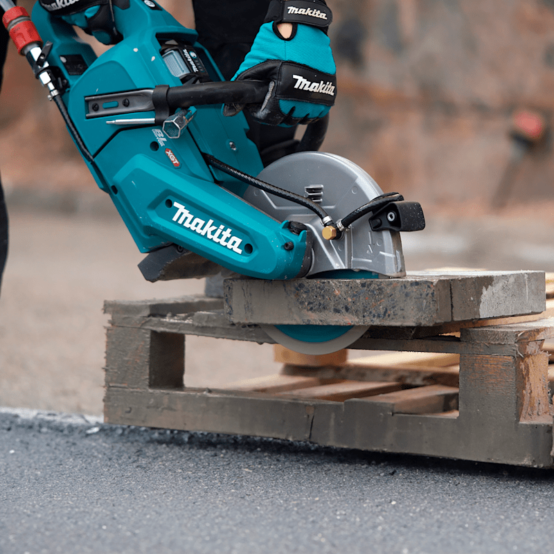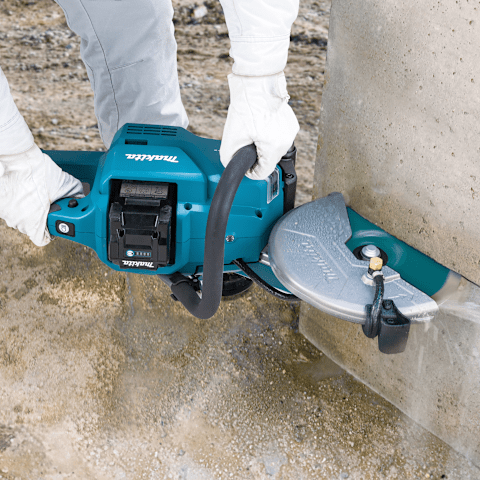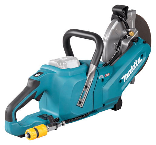 Leichter und vibrationsarmer Akku-Trennschleifer für den täglichen Einsatz. Inklusive Schlauchkupplung für Nassschnitte.