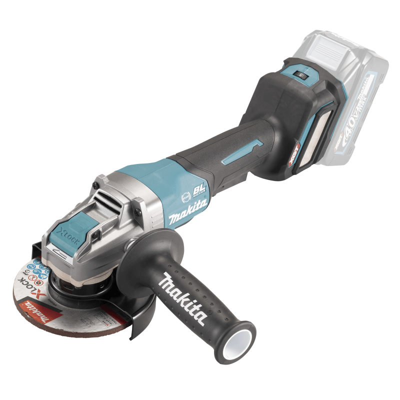 Akku-Winkelschleifer mit Paddelschalter und Motorbremse für intensive Arbeiten. Mit AWS und X-LOCK.Leistungsstarker 40 V max. Akku-Winkelschleifer für schwere Trenn- und Schrupparbeiten. Die AFT-Technologie minimiert den Rückschlag der Maschine bei blockierendem Werkzeug. Das XPT Schutzsystem verhindert das Eindringen von Schmutz und Spritzwasser. Drehzahl 5-stufig regelbar. Mit Motorbremse. Für 125 mm Schleifscheiben. Mit X-LOCK für schnellen und einfachen Scheibenwechsel.