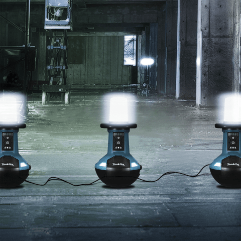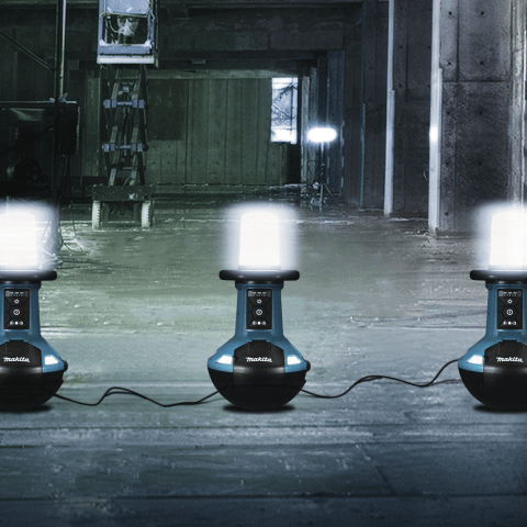 Selbstaufrichtender LED-Baustrahler zur optimalen Ausleuchtung des Arbeitsplatzes