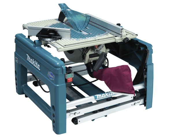Sägetisch in beiden Betriebsfunktionen nach links und rechts stufenlos von 0° - 45° drehbar