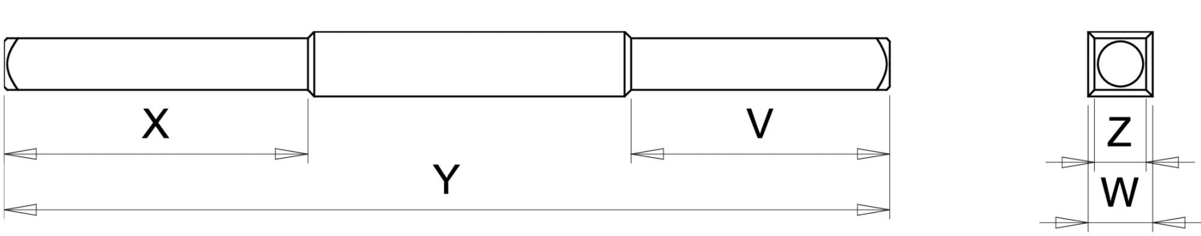 Massivstift ABGES. 0572/1840/00 8X10X8X140 MM