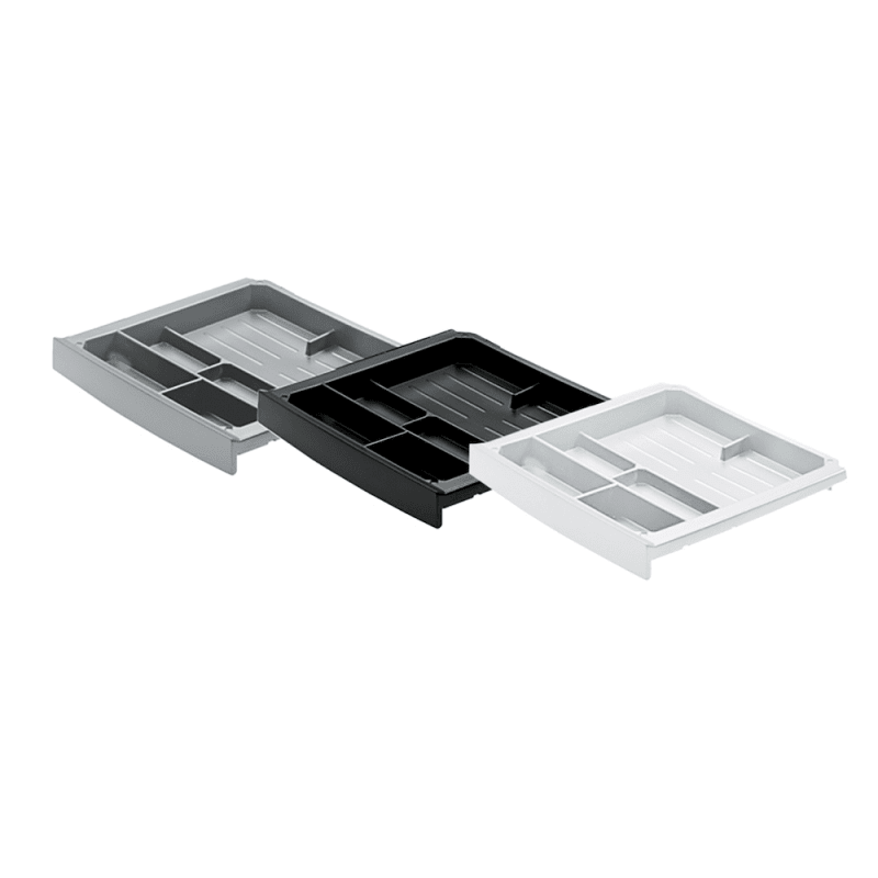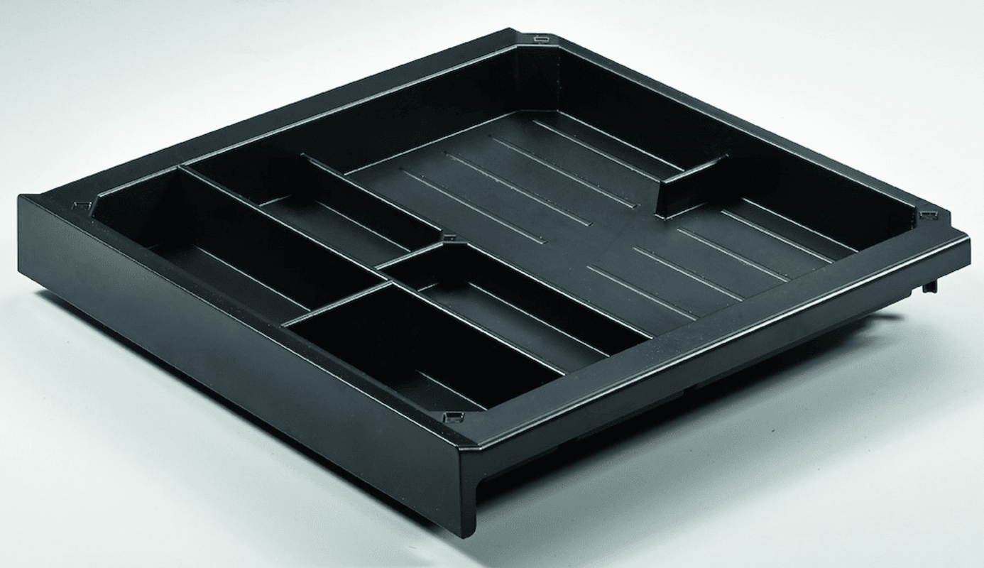 • Schale für Auszugsführung Quadro 12• Abmessung außen (Breite x Tiefe x Höhe) 376 mm x 354 mm x 40 mm• Mit Einteilung z. B. für Handy, Kamera, Spiralblock etc.• Für Montage in Korpusmöbeln und un