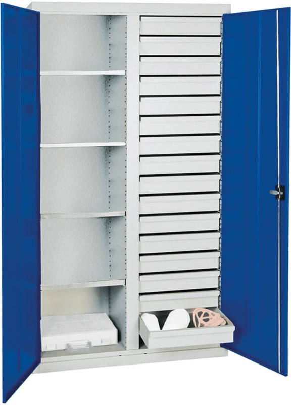 Werkzeug- und Materialschrank Serie 2000, 4 Fachböden, 16 Schubladen, Mitteltrennwand • Geeignet für Produktionsbereiche • Material: Qualitätsfeinblech, verschweißt • Oberfläche: pulverbeschichtet, u