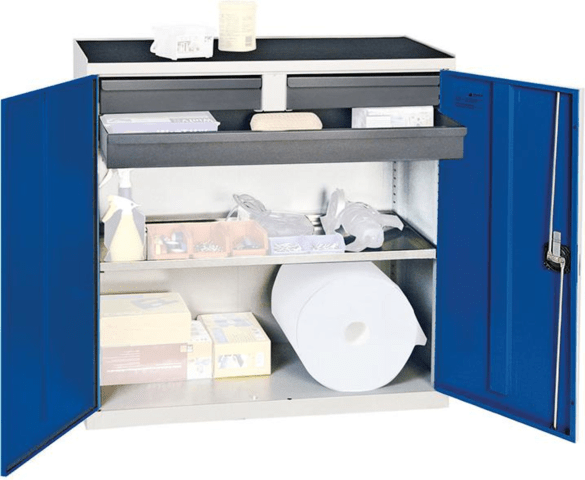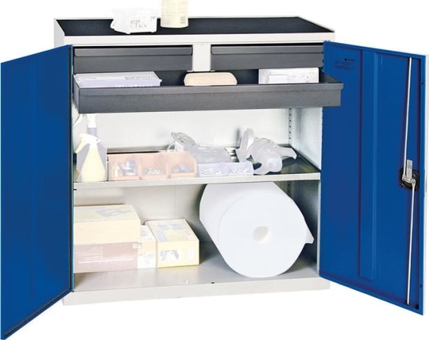Werkzeug- und Materialschrank Serie 3000, 2 Schubladen, 1 Großraumschublade, 1 Wannenboden • Geeignet für alle betrieblichen Bereiche • Material: Qualitätsfeinblech, verschweißt • Oberfläche: pulverb