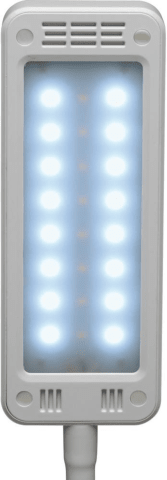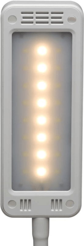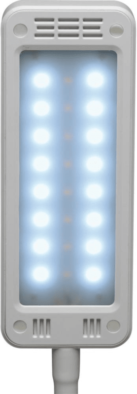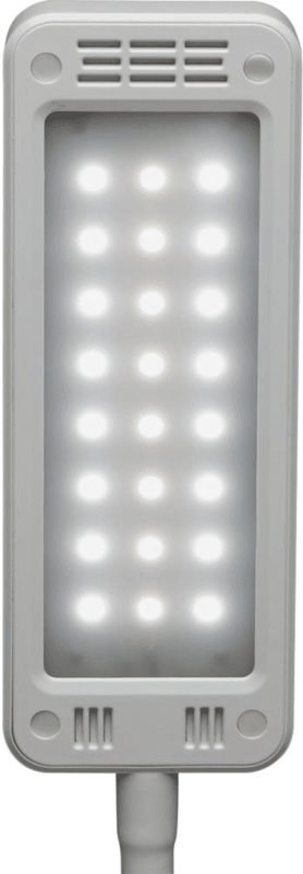 LED-Tischleuchte MAULpearly colour vario, dimmbar • Platzsparend und handlich • Touchfeldbedienung am Leuchtenfuß • Stabiler Arm mit Flexbereich zur Einstellung des Leuchtwinkels • Arm: Metall mit gummierter Oberfläche • Leuchtenkopf: 16 x 6 cm. Kunststoff, dreh- und neigbar • Fuß: 16,5 x 10,5 cm, mit Beschwerungseinlage und schreibtischschonender Unterlage • Farbtemperatur und Beleuchtungsstärke in 3 Stufen einstellbar • Mit 24 LED: 8 warmweiße (3000 Kelvin) und 16 tageslichtweiße (6500 Kelvin) • Leuchtmittel-Lebensdauer: ca. 20000 h • Energieverbrauch: 6 kWh/1000h Hinweis: Leuchte enthält eingebaute LED-Lampen. Lampen können nicht ausgetauscht werden.