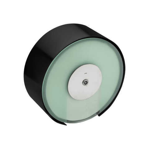 Knud Holscher Kollektion, Maxi-Toilettenpapierhalter, Ø212mm, transparente Frontplatte. Hergestellt aus hochwertigem, rostfreiem Edelstahl AISI 316, der vor starker Korrosion schützt. 20 Jahre Garanti