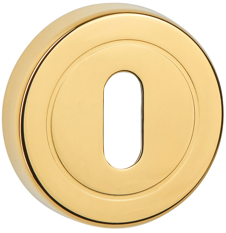 Drückerrosette 2233 K mit RHF, Lochungsdurchmesser 16 mm, rund, mit Schrauben / mit 7 mm Nocken, Oberfl. 18 (PVD Messingfarben)