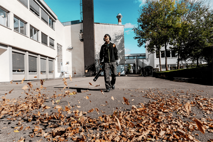 • Kraftvolles, leises Akku-Blasgerät zum zügigen Entfernen von Laub und Schmutz von Plätzen und Wegen