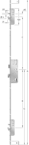 KFV Mehrfachverriegelung MFS AS2600AG; Produkttyp: Mehrfachverriegelung; Produkttyp (Hersteller): Mehrfachverriegelung; Ausführung: Schlüsselbetätigt,mechanisch; Verriegelung: über Schließzylinder; En
