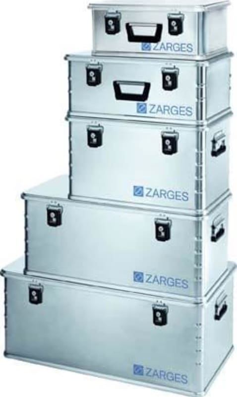 ZARGES-Box • Stabile Leichtmetallbox • Hochfeste, korrosionsbeständige Alu-Legierung • Sicher, sauber und geschützt verstauen • Staub- und spritzwassergeschützt • Edelstahlscharniere • Umlaufende Dec