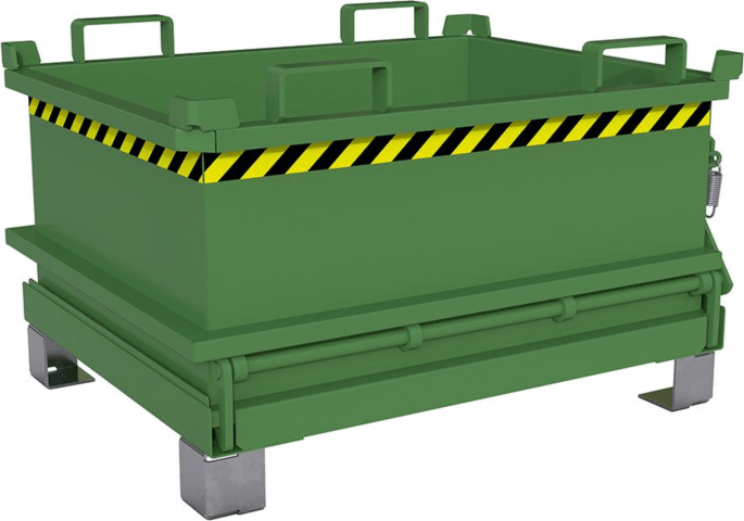 Mini-Klappbodenbehälter Typ MSB • Behälter: robuste Stahlkonstruktion • 3-fach stapelbar • Unterfahrhöhe: 100 mm (mit Gabelhubwagen transportierbar) • Bodenklappe: schließt beim Aufsetzen selbsttätig • Sicherung gegen unbeabsichtigtes Abrutschen und Öffnen der Bodenklappe Hinweis: Dieser kleine Klappbodenbehälter verfügt über eine Bodenentleerung. Er ist überall dort einsetzbar, wo wenig Platz ist.