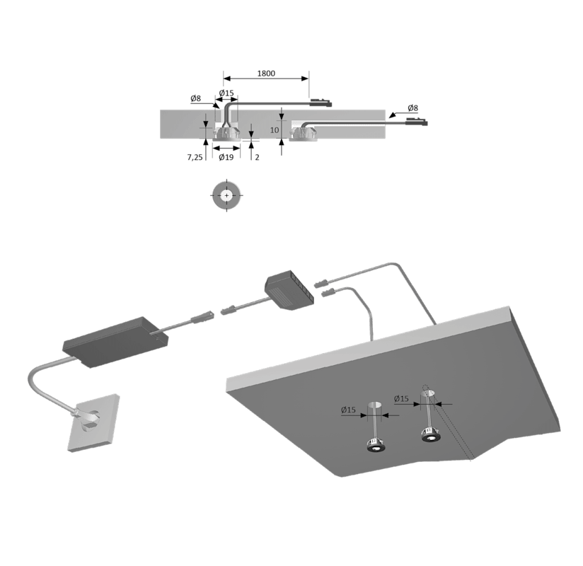 Magic by Halemeier MiniSpot schwarz ww 12VDC 1,0W LTG 1,8m M1