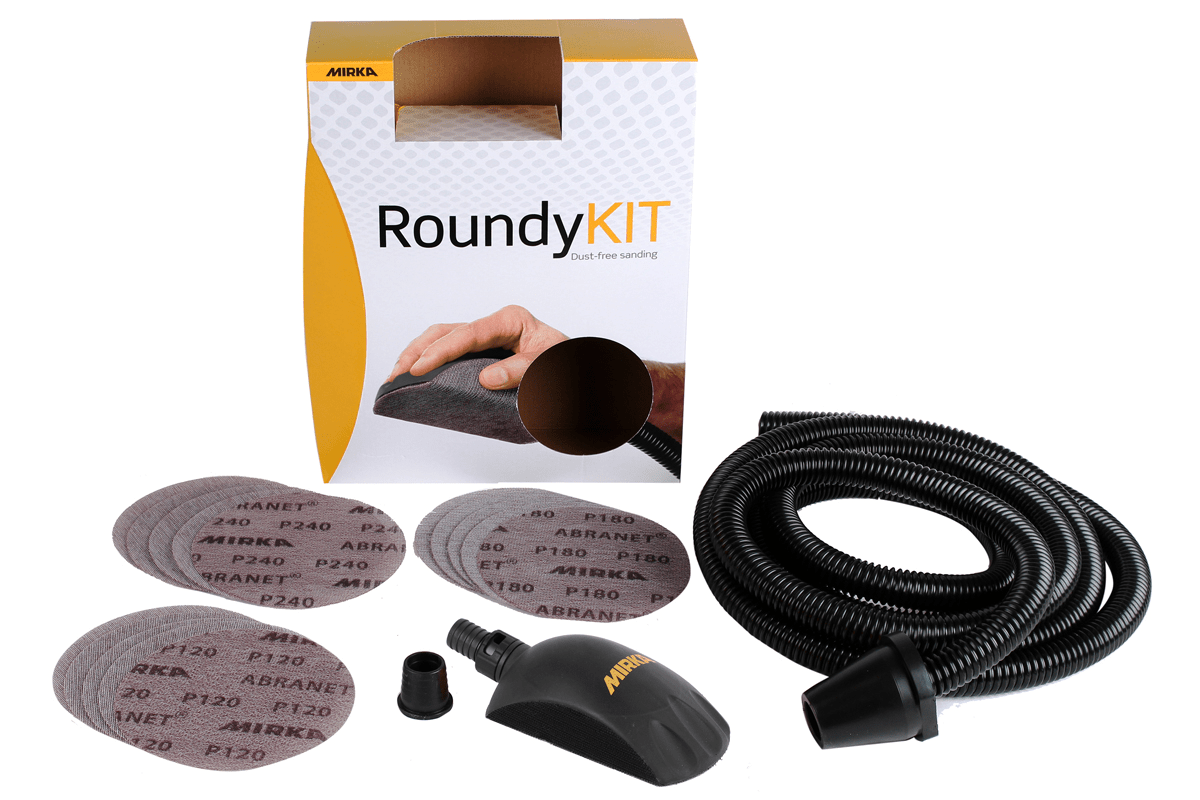 MIRKA HANDBLOCK ROUNDY KIT MIT ABSAUGUNG MUFFE,20MMX4M,5X P120,180,240 KIT00ROUND