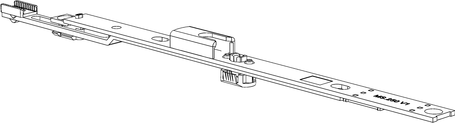WINKHAUS, Drehkipp-Mittenverriegelung, DIN-Richtung: DIN Links-Rechts, Modellnummer: MS.SU.250-1, Ergänzung: Mittenfixierung, für Stulpflügelgetriebe, Sicherheitsschließblech vormontiert, Länge: 250 m