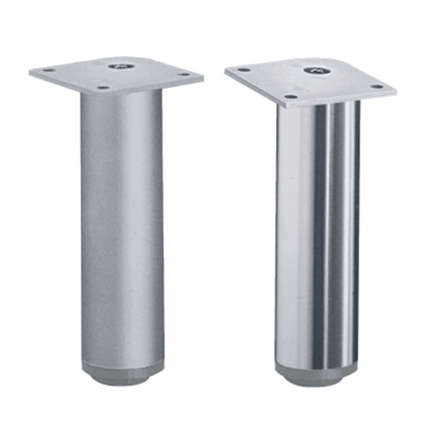 • Durchmesser 40 mm • Mit Bodenausgleich + 10 mm per Stellschraube • Belastbarkeit 150 kg pro Möbelfuß • Montageplatte und Möbelfuß Aluminium silber eloxiert • Inklusive Kunststoff-Gewindegleiter