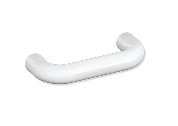 HEWI Bügelgriff 111.23G.6; Material: Kunststoff; Befestigung: mit Holzschrauben; Einsatzbereich: Möbel; Farbe: weiß; Farbton: signalweiß; Länge: 148 mm; Höhe: 58 mm; Durchmesser: 23 mm; Oberfläche: glanz; Montage: unsichtbar verschraubt; Bohrabstand: 125 mm; Basis: Bügelgriff; Befestigungsart: zur Verschraubung von der Rückseite; Anzahl Befestigungspunkte: 2 St.