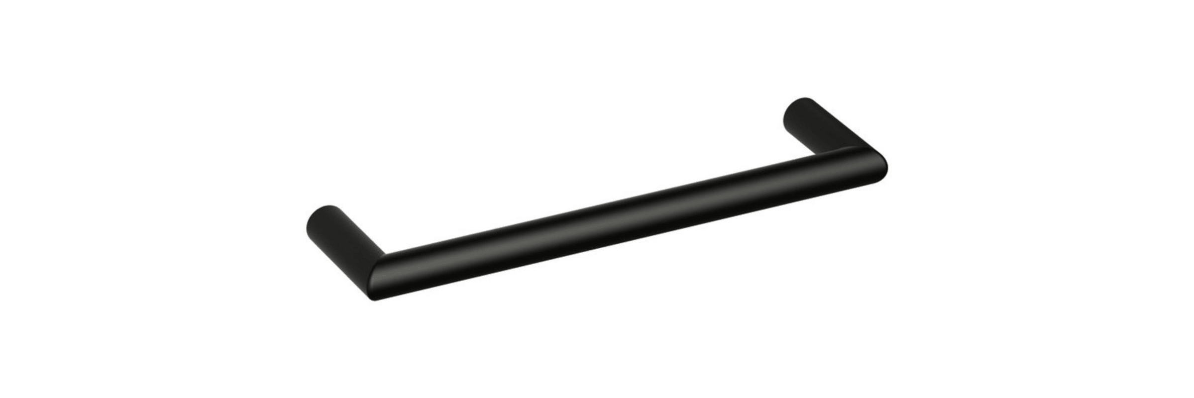 HEWI Bügelgriff 562.10B128; Material: Kunststoff; Befestigung: mit Holzschrauben; Einsatzbereich: Möbel; Farbe: schwarz; Farbton: tiefschwarz; Länge: 138 mm; Höhe: 35 mm; Durchmesser: 10 mm; Oberfläch