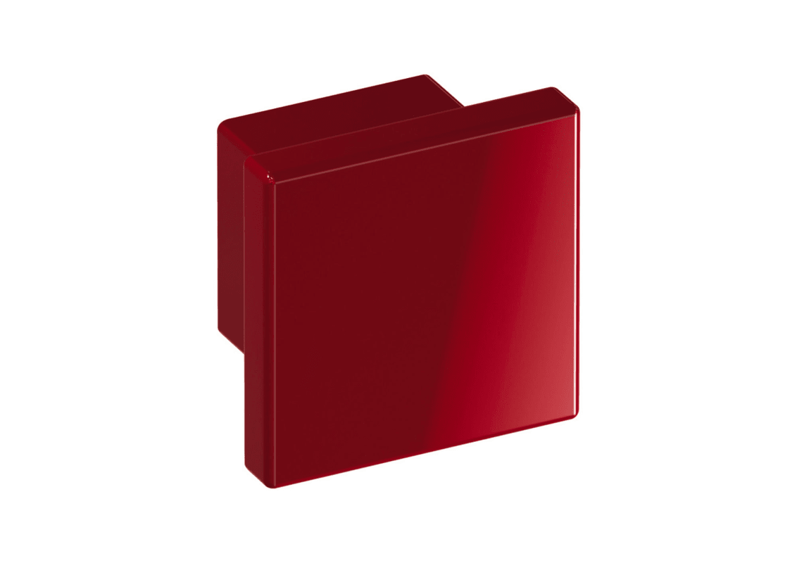 HEWI Knopf 547.32.3; Befestigung: Vorgebohrt für Holzschraube; Form: eckig,mit Griffmulde; Material: Kunststoff; Einsatzbereich: Möbel; Basis: Knopf; Befestigungsart: zur Verschraubung von der Rückseite; Breite: 32 mm; Länge: 32 mm; Höhe: 30 mm; Farbe: rot; Farbton: rubinrot; Oberfläche: hochglanz