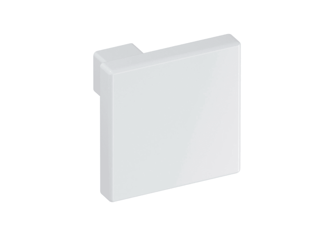 HEWI Knopf 547.32.2; Befestigung: Vorgebohrt für Holzschraube; Form: eckig,mit Griffmulde; Material: Kunststoff; Einsatzbereich: Möbel; Basis: Knopf; Befestigungsart: zur Verschraubung von der Rückseite; Breite: 32 mm; Länge: 32 mm; Höhe: 30 mm; Farbe: weiß; Farbton: signalweiß; Oberfläche: hochglanz