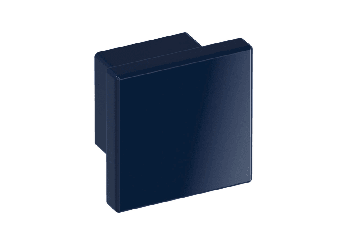 HEWI Knopf 547.32.3; Befestigung: Vorgebohrt für Holzschraube; Form: eckig,mit Griffmulde; Material: Kunststoff; Einsatzbereich: Möbel; Basis: Knopf; Befestigungsart: zur Verschraubung von der Rückseite; Breite: 32 mm; Länge: 32 mm; Höhe: 30 mm; Farbe: blau; Farbton: stahlblau; Oberfläche: hochglanz