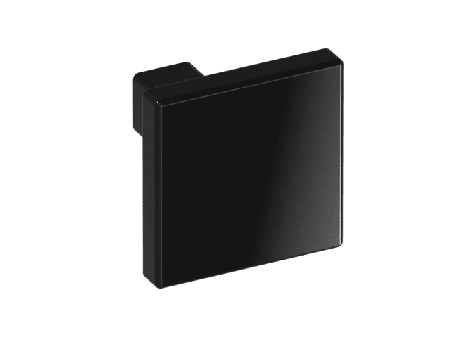 HEWI Knopf 547.32.2; Befestigung: Vorgebohrt für Holzschraube; Form: eckig,mit Griffmulde; Material: Kunststoff; Einsatzbereich: Möbel; Basis: Knopf; Befestigungsart: zur Verschraubung von der Rückseite; Breite: 32 mm; Länge: 32 mm; Höhe: 30 mm; Farbe: schwarz; Farbton: tiefschwarz; Oberfläche: hochglanz