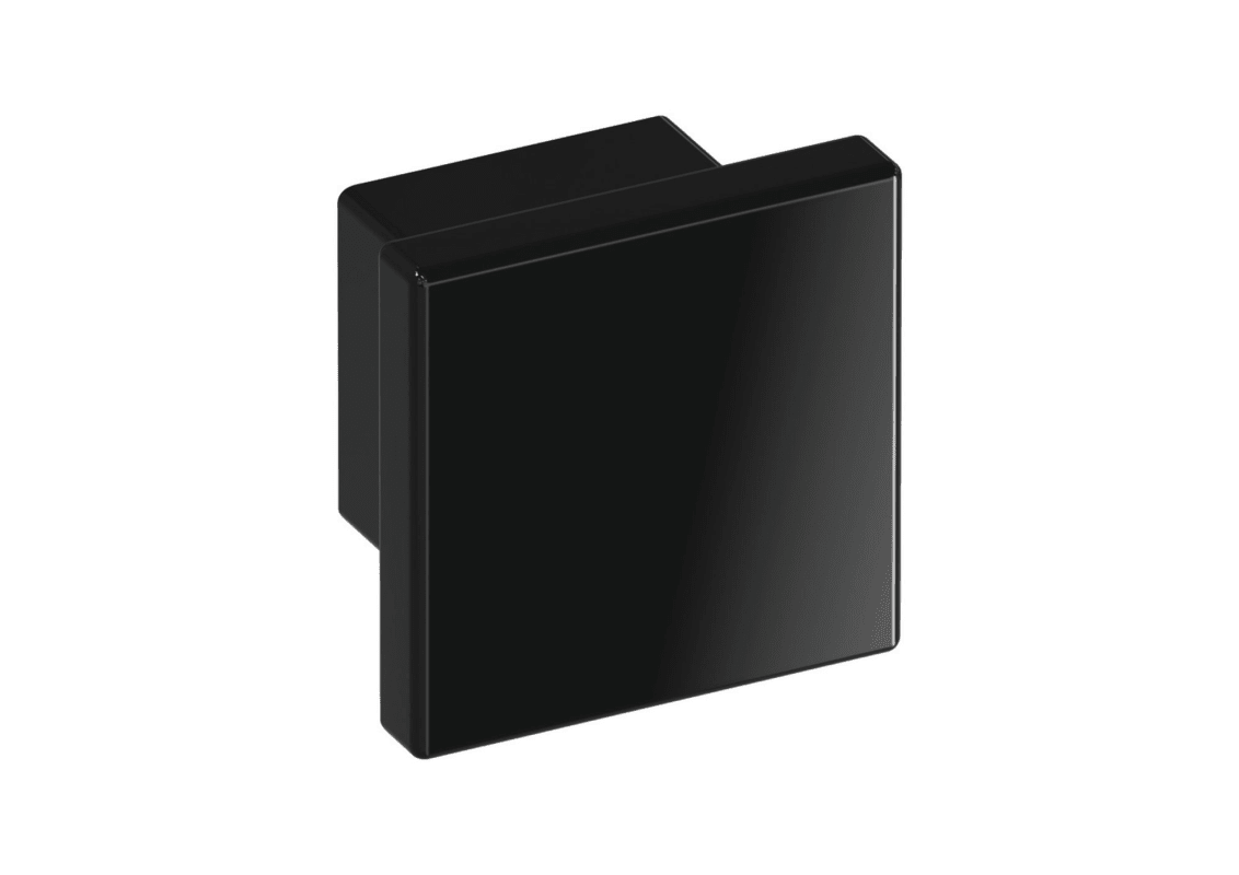 HEWI Knopf 547.32.3; Befestigung: Vorgebohrt für Holzschraube; Form: eckig,mit Griffmulde; Material: Kunststoff; Einsatzbereich: Möbel; Basis: Knopf; Befestigungsart: zur Verschraubung von der Rückseite; Breite: 32 mm; Länge: 32 mm; Höhe: 30 mm; Farbe: schwarz; Farbton: tiefschwarz; Oberfläche: hochglanz