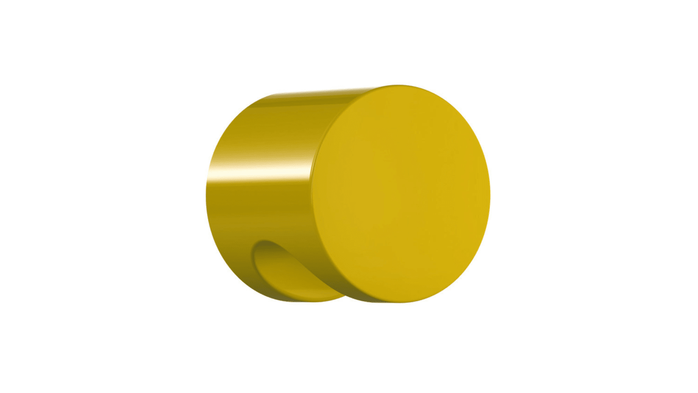 HEWI Knopf 557.32; Befestigung: Vorgebohrt für Holzschraube; Form: mit Griffmulde,rund; Material: Kunststoff; Einsatzbereich: Möbel; Basis: Knopf; Befestigungsart: zur Verschraubung von der Rückseite; Durchmesser: 32 mm; Höhe: 30 mm; Farbe: gelb; Farbton: senfgelb; Oberfläche: glanz