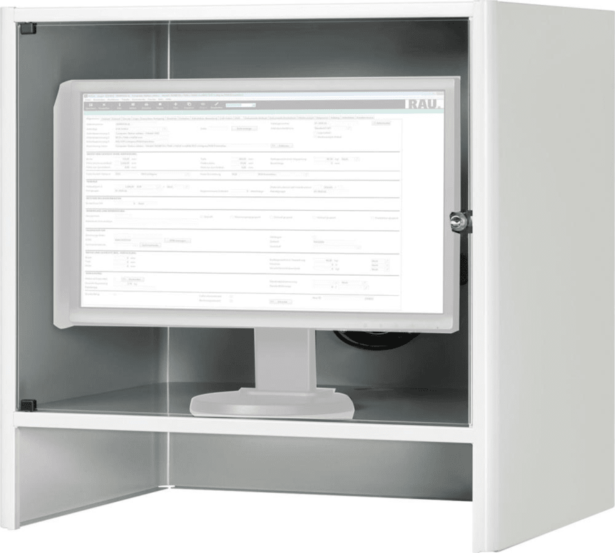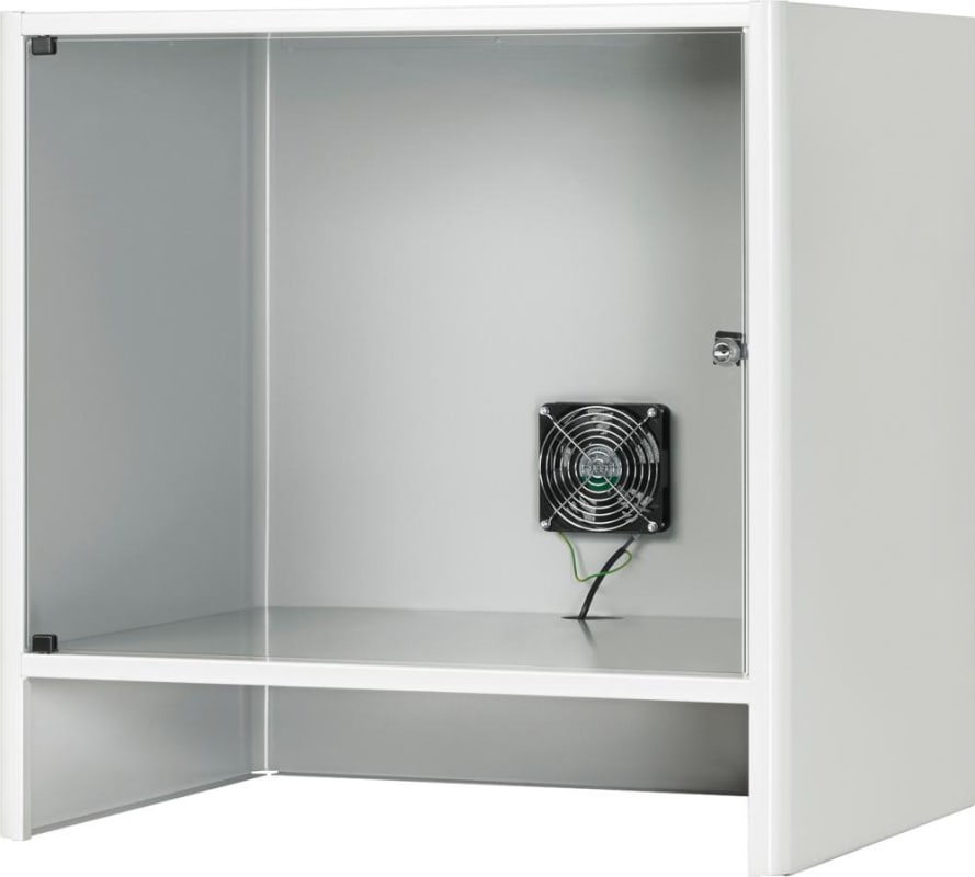 • Monitorfach: Maße innen B x H 705 x 530 mm, inklusive integriertem Ventilator mit Filtermatte, Belüftung, Staubschutz