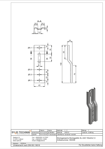 MONTAGEBLITZ XL/G20 150X43X1,5 MM LASCHE 20MM GEKRÖPFT VERZINKT 550309
