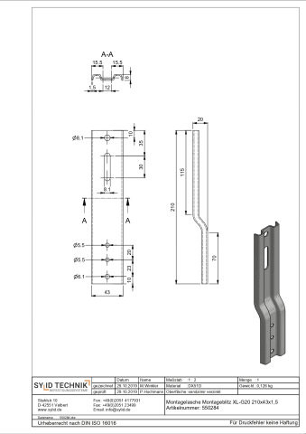 MONTAGEBLITZ XL/G20 - 210X43X1,5 MM LASCHE 20 MM GEKRÖPFT SEND. VERZ. 550284