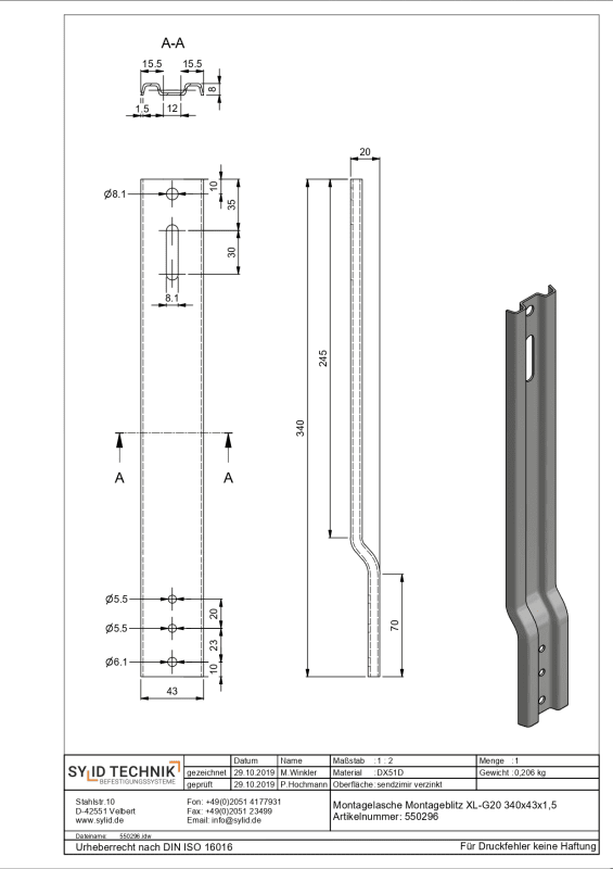 Montageblitz XL/G, für die auskragende Befestigung von Bauelementen in der Dämmebene. Mit 8,1 mm Schraubloch.