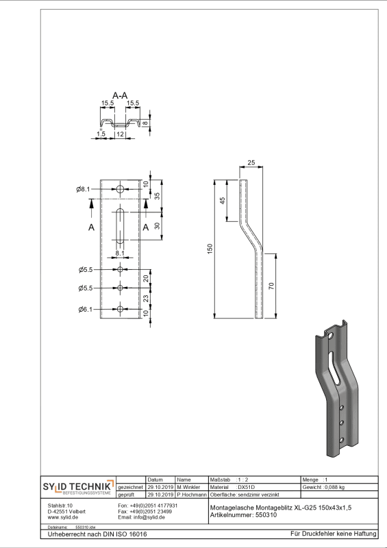 MONTAGEBLITZ XL/G25 150X43X1,5 MM LASCHE 25MM GEKRÖPFT VERZINKT 550310