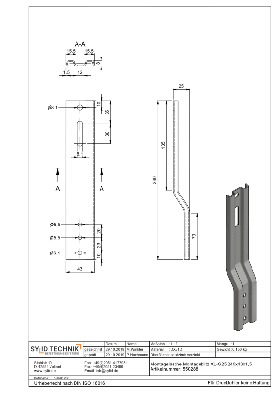 Meesenburg Artikelbezeichnung: MONTAGEBLITZ XL/G25 - 240X43X1,5 MM LASCHE 25 MM GEKRÖPFT SEND. VERZ. 550288