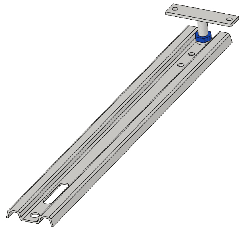 Montageblitz XL, mit höhenverstellbarer Anschraubplatte, für die auskragende Befestigung von Bauelementen bis 200 mm in der Dämmebene. Mit 8,1 mm Schraubloch. Verwendbar für die untere und seitliche B