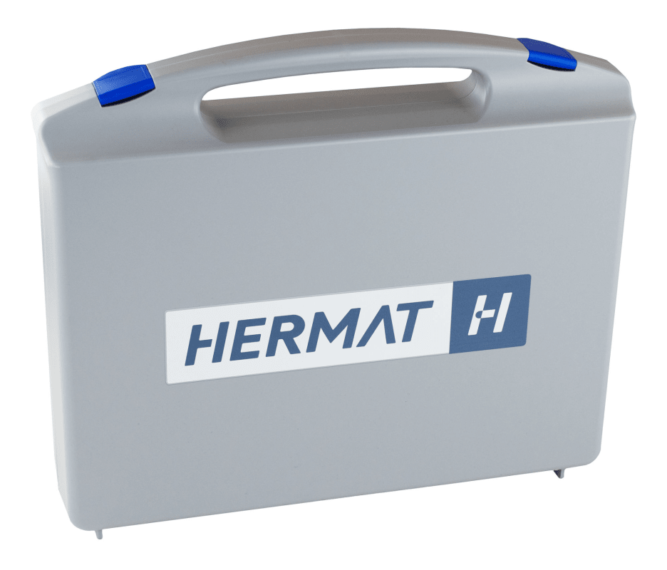 Koffer 375 x 265 x 80 mm in Grau / Blau mit Hermat Druck