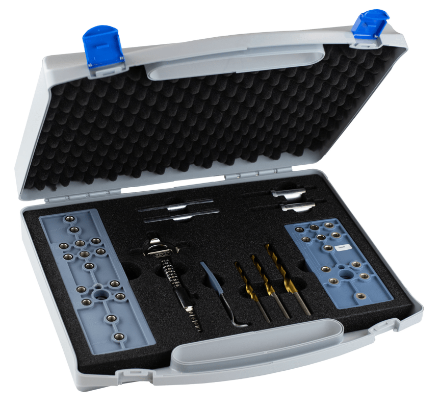 Der Montagehilfekoffer eignet sich zur Montage von Produkten zahlreicher marktüblicher Hersteller von Innentür- und Schutzgarnituren.