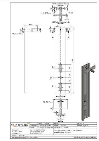 MONTAGELASCHE S 275-8,5 MM (FR.7,7) M.PLATTE 550137