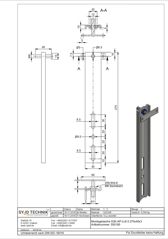 MONTAGELASCHE SKP 275/8,5 MM (FR.7,7) -40 MM 550180