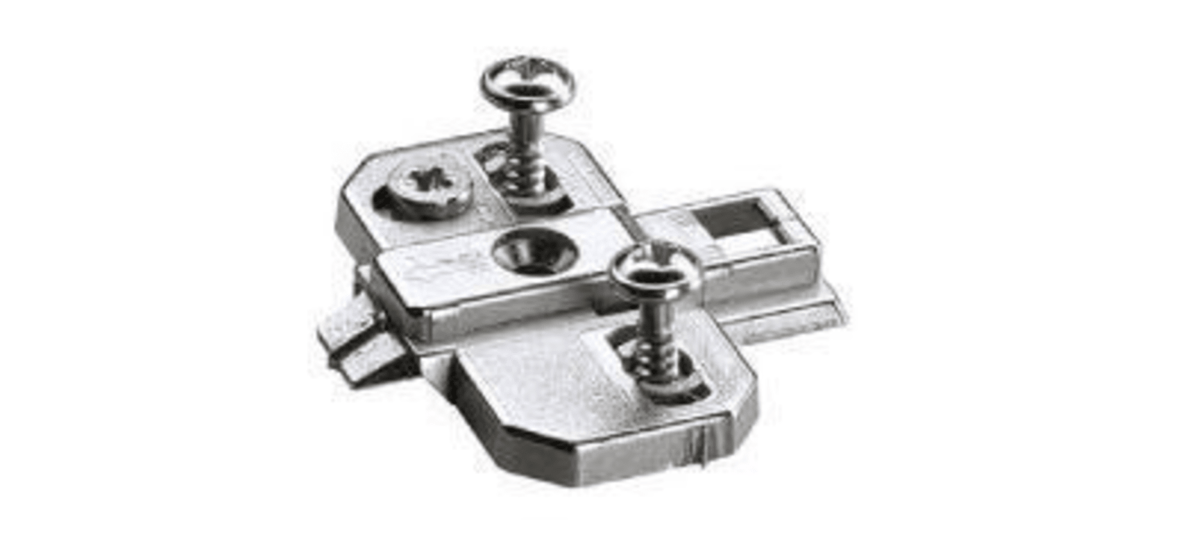 "Hettich Top" für Eckanschläge Mit vormontierten Spanplattenschrauben Exzenter-Höhenverstellung +/- 2mm