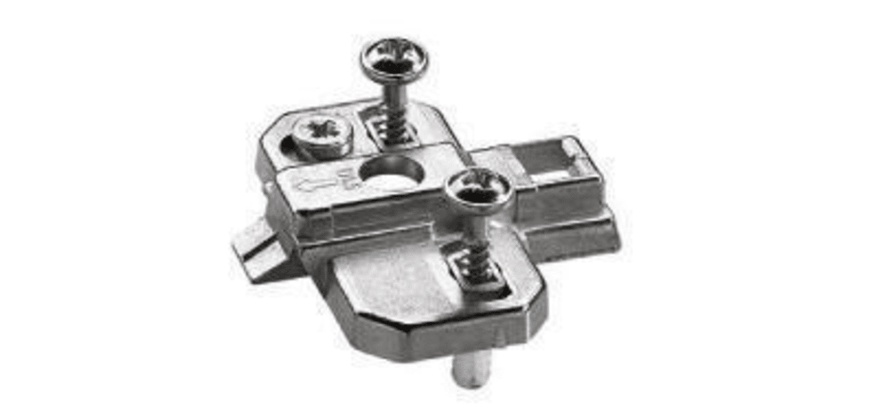 "Hettich Top" für Eckanschläge ab 15 mm Seitenstärke möglich Mit vormontierten Spezialschrauben und Kunststoffmuffen für Bohrungen ø 5 x 12 mm Exzenter-Höhenverstellung ±2 mm