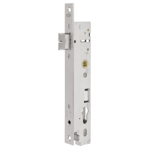 BKS Panik-Einsteckschloss B 1959; Produkttyp: Panik-Einsteckschloss; Produkttyp (Hersteller): Selbstverriegelndes Panik-Motorschloss; Ausführung: motorisch; Verriegelung: motorisch; Entriegelung: manuell; Drückernuss: einteilig; Stulpform: U-Stulp; Material Stulp: Edelstahl; Funktion Anti Panik: Wechselfunktion E; Schlosskasten: offen; Schlosskastenhöhe: 240 mm; Schlosskastenstärke: 18 mm; Wechsel: mit Wechsel; Norm: DIN EN 1125,DIN 18250,DIN EN 179; Zulassung: für Fluchttüren,für Feuerschutz; Türart: Rohrrahmen; Türflügelanzahl: zweiflügelig; Türwerkstoff: Aluminium,Stahl; Spannung: 24 V; Spannungsart: DC; Steuerung: mit integrierter Steuerung; Dornmaß: 65 mm; Hinterdornmaß: 15 mm; Drückernussvierkant: 9 mm; Entfernung: 92 mm; Lochung: Profilzylinder gelocht; DIN-Richtung: DIN Links; Öffnungsrichtung: nach außen öffnend; Stulpausführung: kantig; Stulpbreite: 24 mm; Stulplänge: 270 mm; Stulpstärke: 3 mm; Farbton Stulp: edelstahl; Oberfläche Stulp: matt; Zusatzfunktion-/Ausstattung: Überwachungsfunktion; Ausführung Falle: Fallenriegel mit Auslösehebel; Riegelausschluss: 20 mm; Einbautiefe Schlosskasten: 77 mm; Zertifikate: VdS