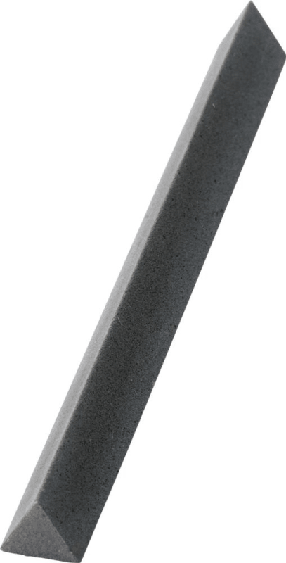 Silicium-Carbid-Schleiffeile, dreikantSchleiffeilen aus Silicium-Carbid in keramischer Bindung, in grober, mittlerer und feiner Körnung.Schleiffeilen finden Anwendung im Formen- und Werkzeugbau, im allgemeinen Maschinen- und Apparatebau, zum Werkzeugschleifen oder Entgraten, zum Nachbearbeiten an Spritz-, Press- und Druckguss-Werkzeugen und vor allem auch an allen Werkzeugen für die Kunststoff-Industrie. Zum Bearbeiten von Werkzeugen aus Hartmetall und zum Bearbeiten von Aluminium, Bronze, Glas, Gestein, Grauguss und ähnlichen Materialien. Gebrauch trocken, mit Wasser oder Öl.