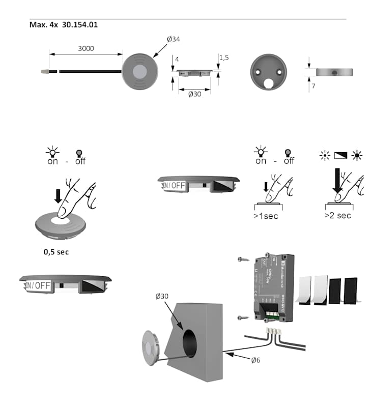 Sensor mit Dimmfunktion zum Einbauen oder Aufschrauben