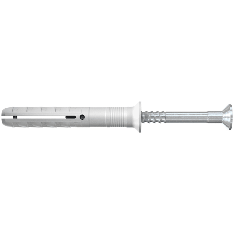 Die integrierte Einschlagsperre vermeidet das vorzeitige Aufspreizen (Verklemmen) des Dübels und sorgt für eine problemlose Montage.