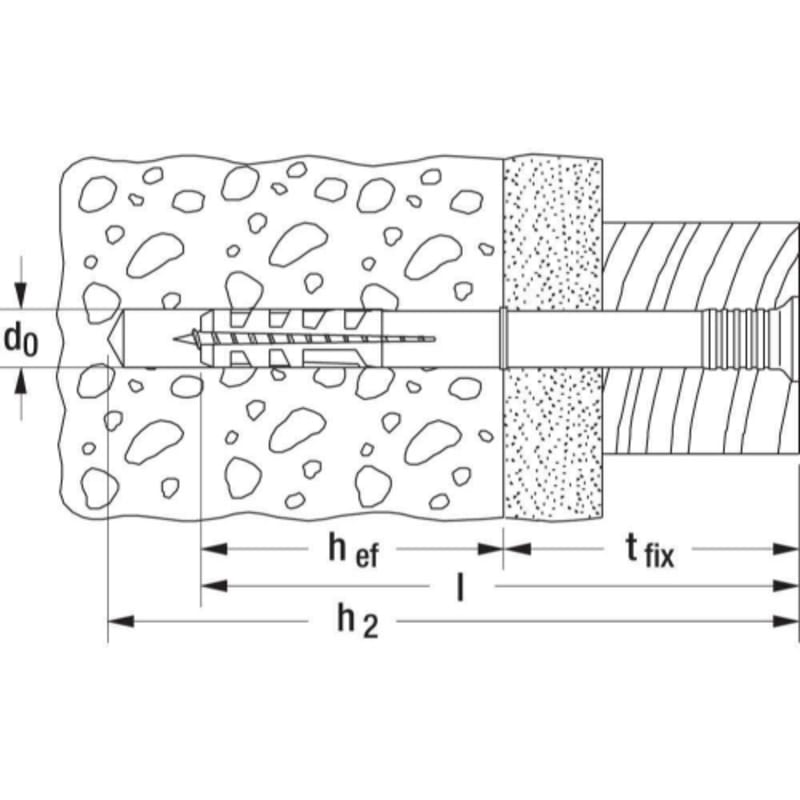 Die integrierte Einschlagsperre vermeidet das vorzeitige Aufspreizen (Verklemmen) des Dübels und sorgt für eine problemlose Montage.