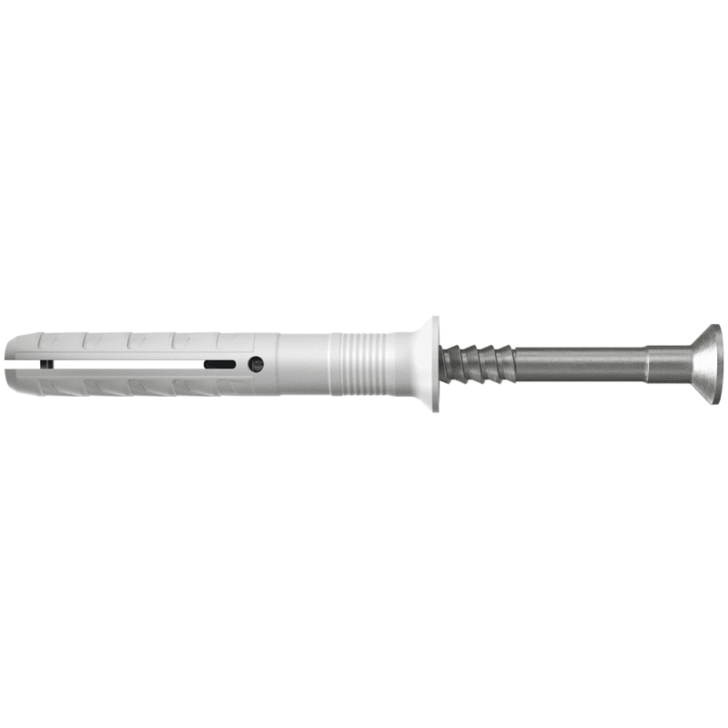 Der fischer Nageldübel N-S mit Senkkopf besteht aus einem hochwertigen Nylondübel und einer nicht rostenden Nagelschraube. Diese sind für eine schnelle Montage bereits vormontiert. Der Nageldübel wird